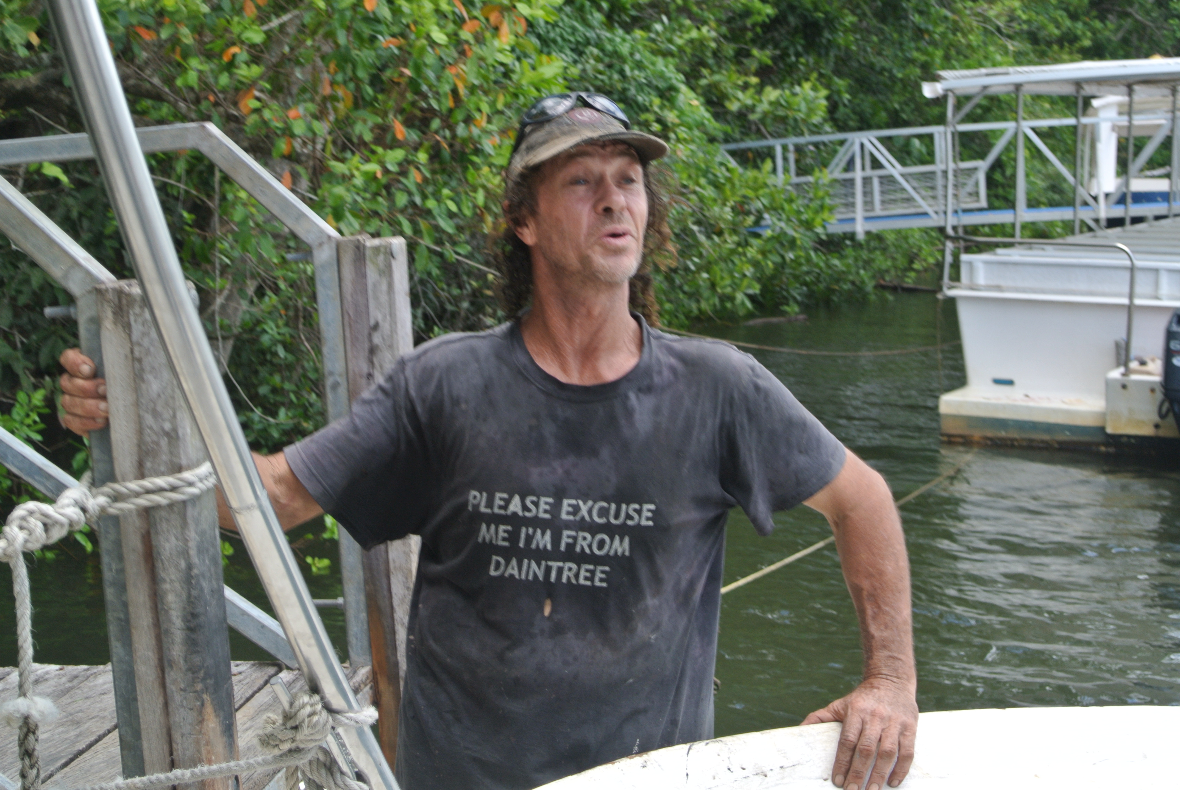 Croc huntin’ in Daintree. Not really huting. More like ‘Croc spotting.’Our guide looking for cros. We had the boat to ourselves.Enough said?We didn’t see many big cros but we met this little guy named Barry. I didn’t love him as much as Pearl the Koala but he was still a good bloke.The town of Daintree