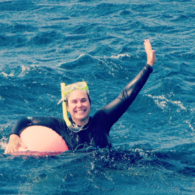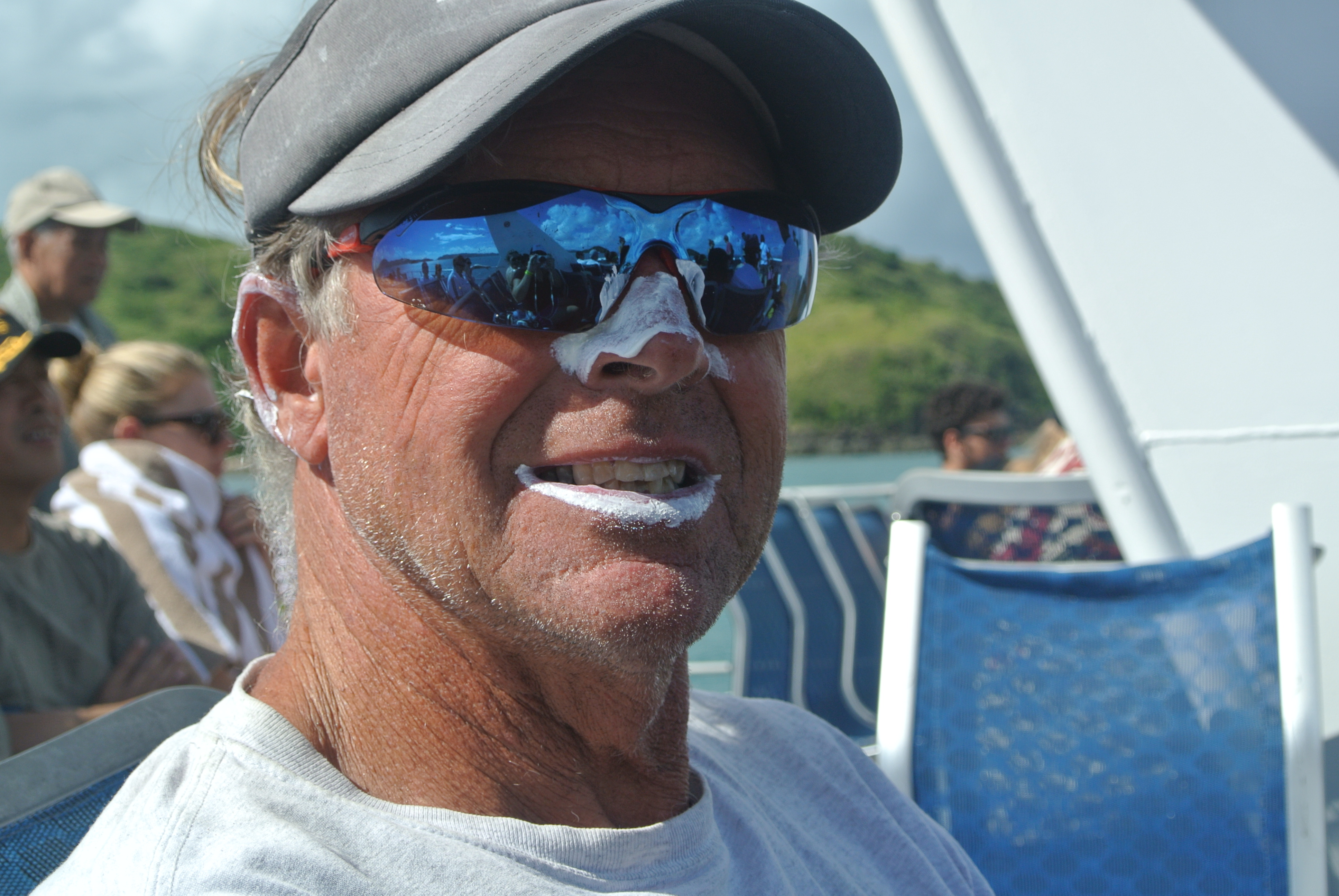 The calm before the storm.Jamie’s feeling relaxed and protected from the sun!Cruisin.