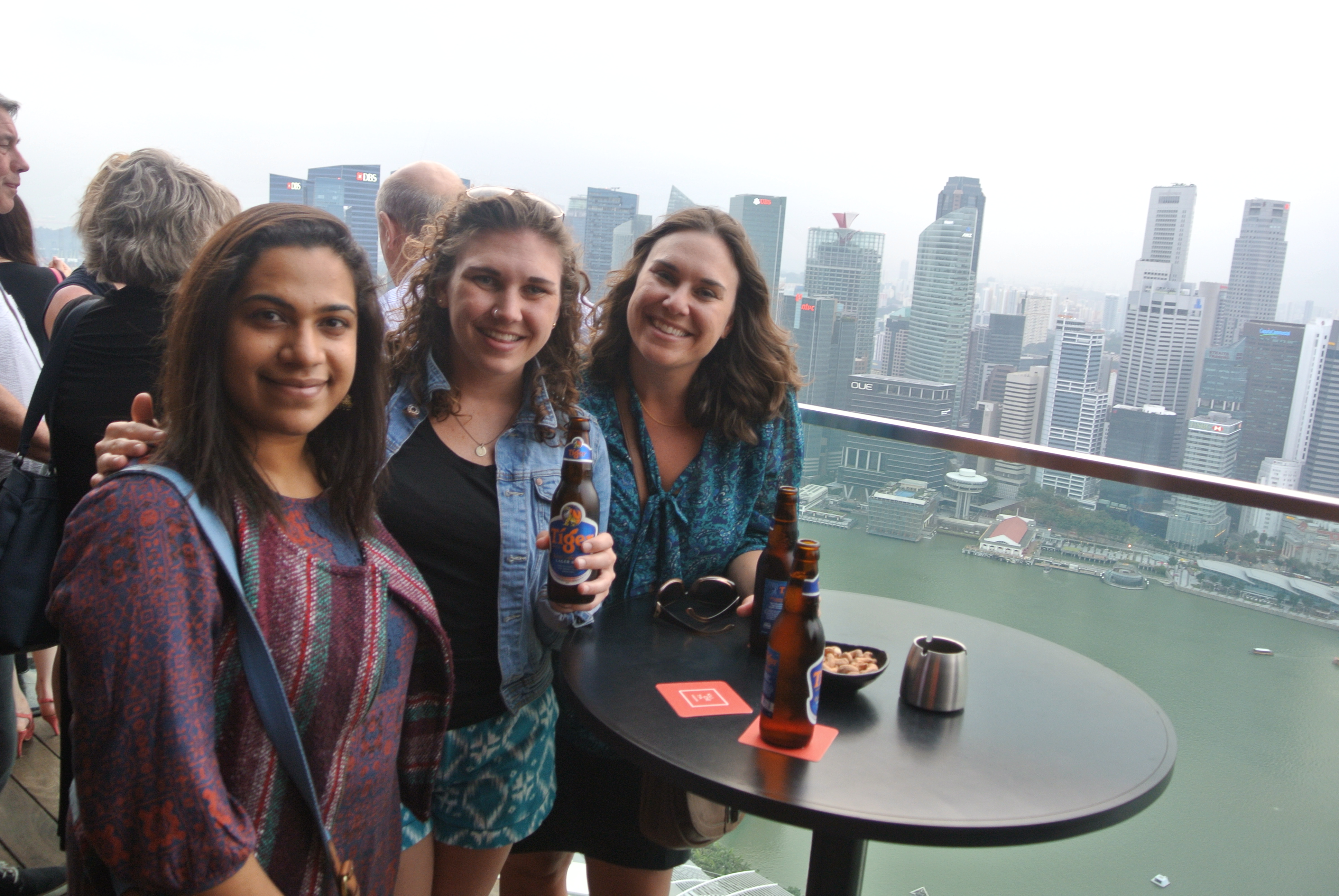 Getting a drink with Julia’s friend at the Marina Bay Sands.View of the city.Waterfall in Malaysia.Walking through Singapore’s botanical gardens.Feasting our way through Singapore.