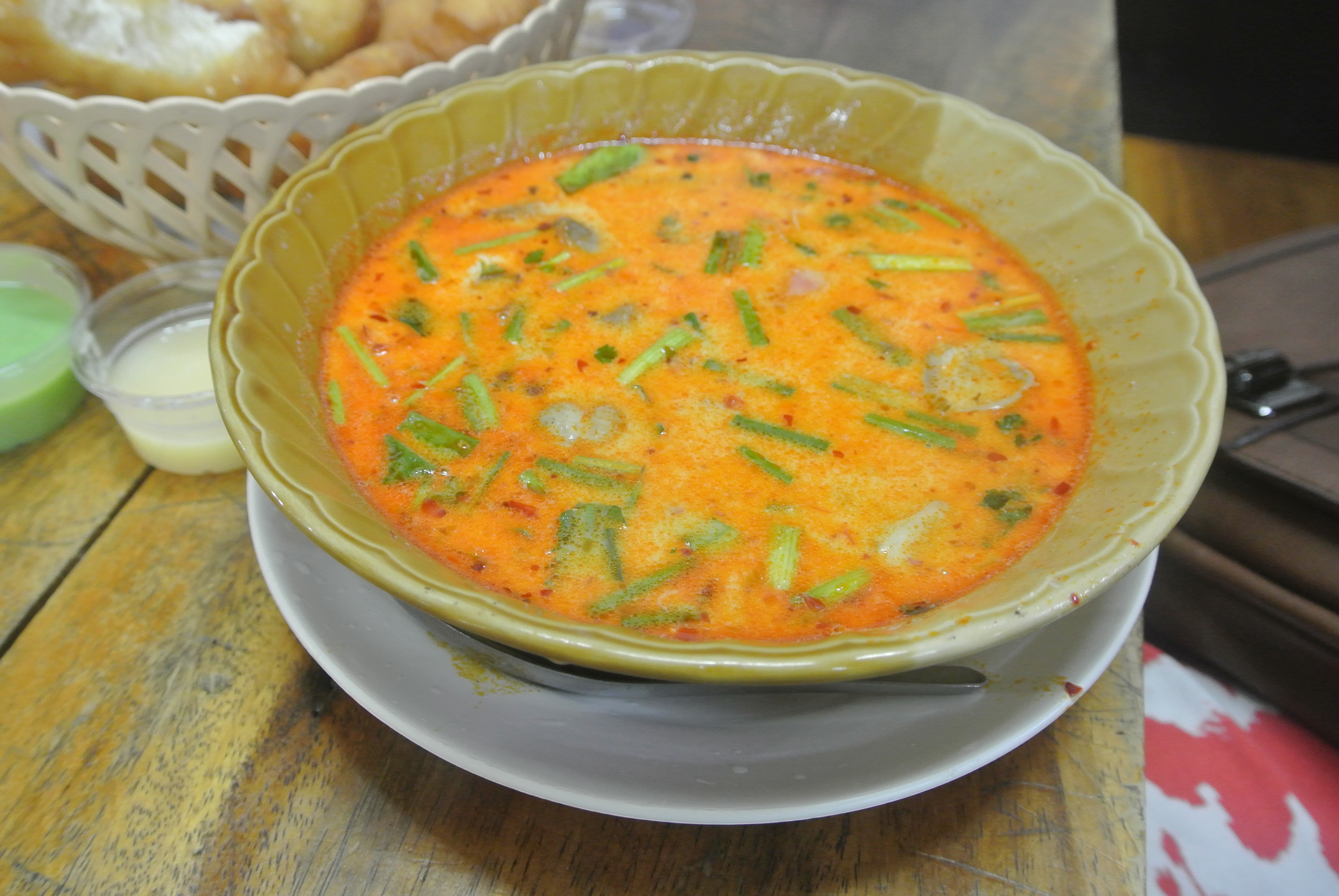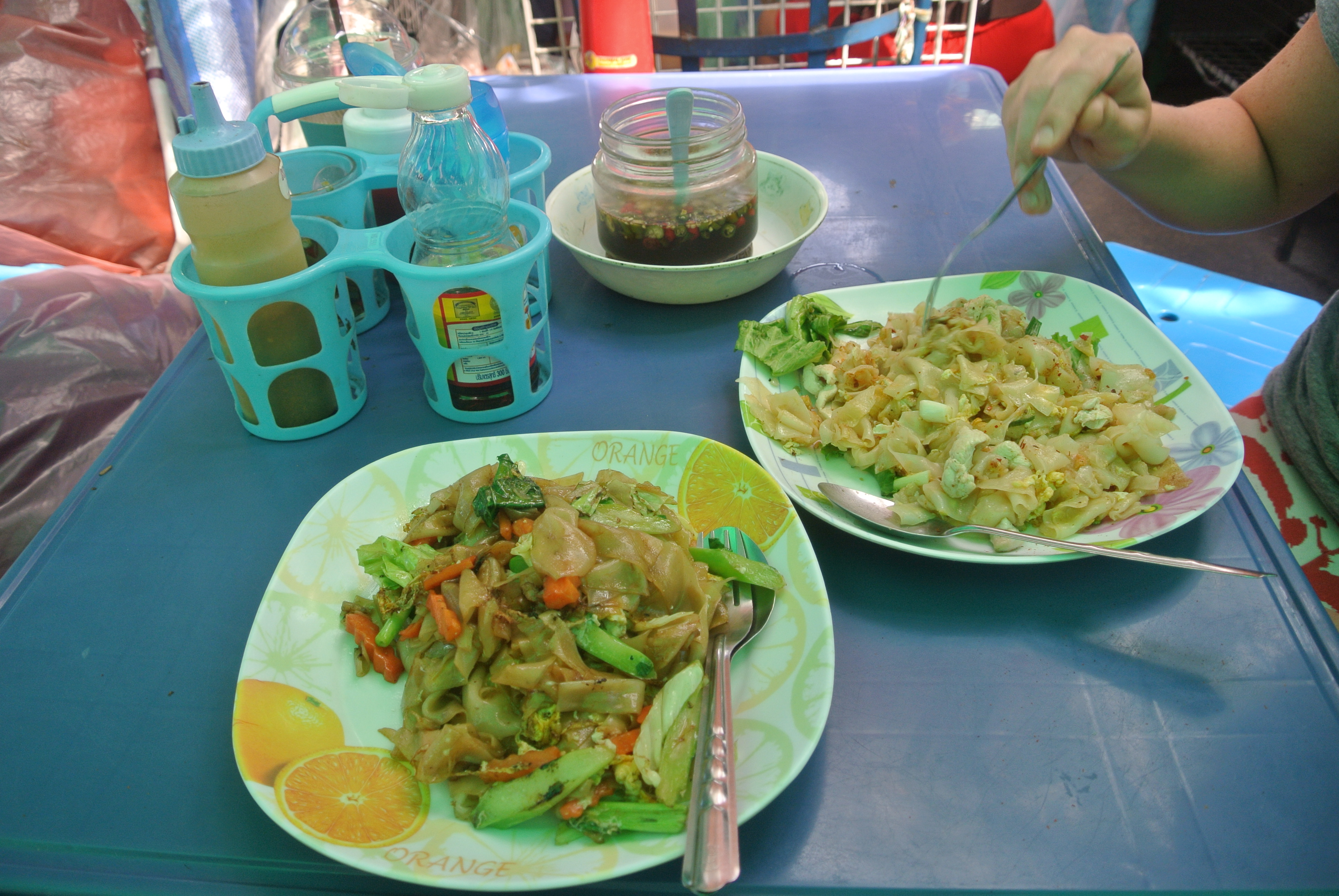 Let’s do this! Bangkok street food is so delicious and inexpensive. We would eat amazing food and typically spend no more than $7 per meal (TOTAL! As in NOT per person!)Papaya and mango salad.Thai coffee I love you so much.Pad Thai and Pad See EwCoconuts galore!Thai green teaChicken rice with morning glory greens.Fried dough deliciousness. Is this even Thai food?Tom yum soup aka THE BEST!Fried chicken.Papaya!Roasted corn.Mango and sticky rice.Pork and noodles.‘Fried’ red curry.Pad see ew.Roasted chicken.Pork sausage.Coconut ice creamRed curry.Thailand produce. Eat the rainbow.