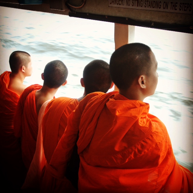 We arrived to Thailand during Chinese New Year. It is the year of the Goat. Celebrate accordingly.Buddhist monks on the river ferry.Buddhist temple.Bottle-cap checkers on the street of Bangkok.